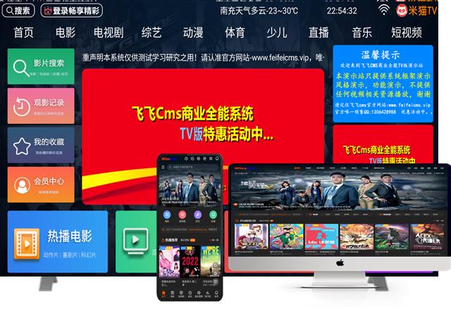 全网最低成本价格,功能齐全,模板众多,PC/APP/TV聚合,接受所有平台比较